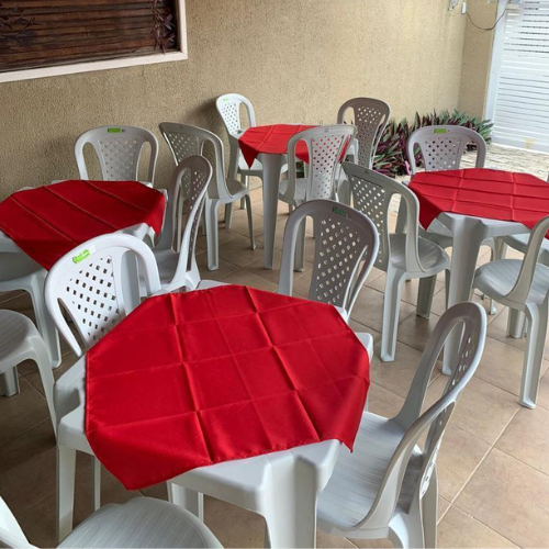 Contamos com um catálogo diversificado de mesas de madeira e plástico, cadeiras confortáveis, tinas para gelar bebidas, além de uma seleção de toalhas lisas e quadriculadas que atendem a diferentes estilos e propostas. Com a RS Mesas e Cadeiras, você tem a tranquilidade de contar com produtos de alta qualidade, sempre higienizados, e uma entrega rápida e eficiente. Nossa equipe está comprometida em tornar seu evento memorável, cuidando de cada detalhe para que você possa aproveitar ao máximo.